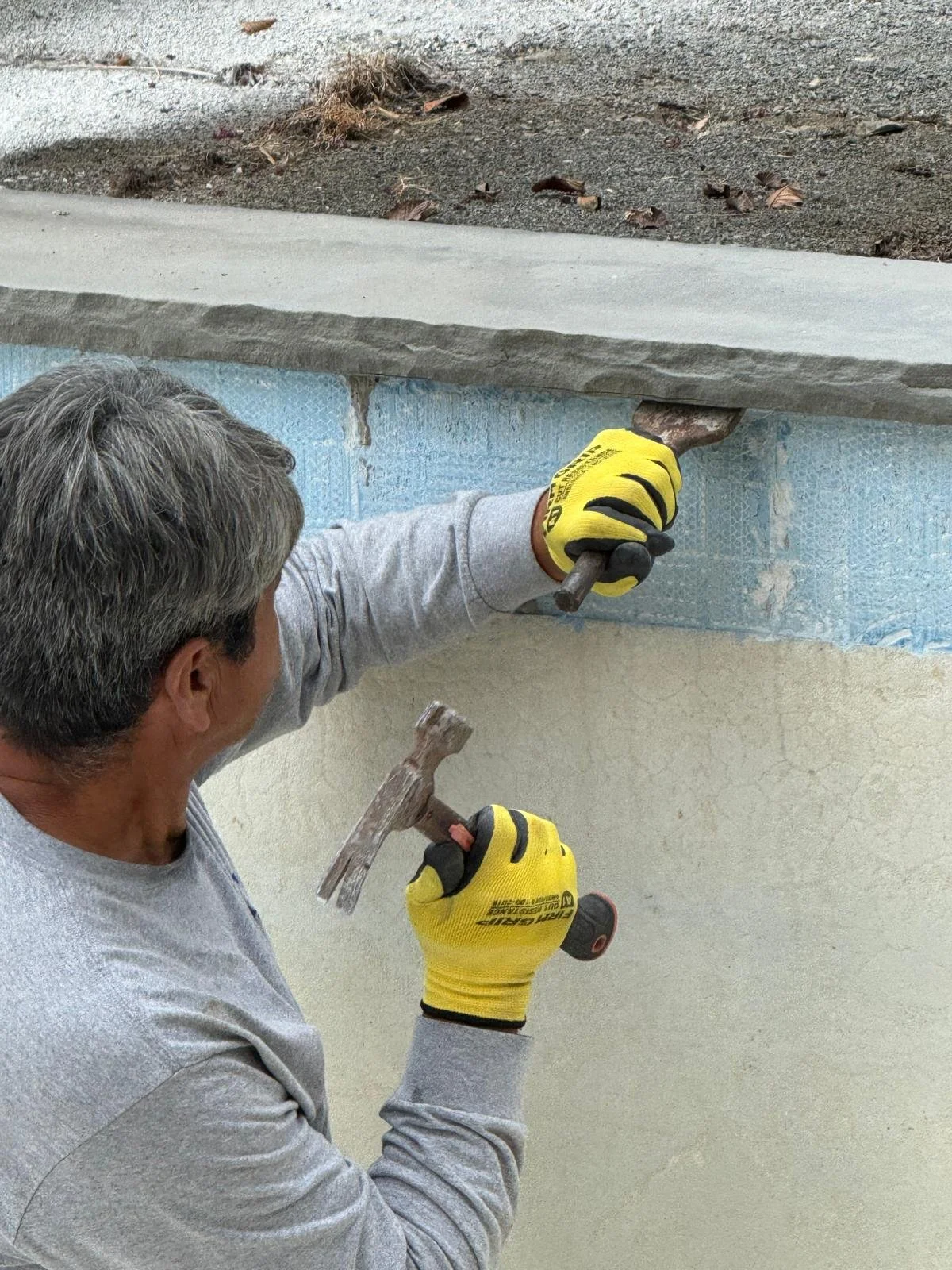 Active rebuild phase — coping removal and demo in progress after full assessment confirmed the path forward. Where certainty meets execution.